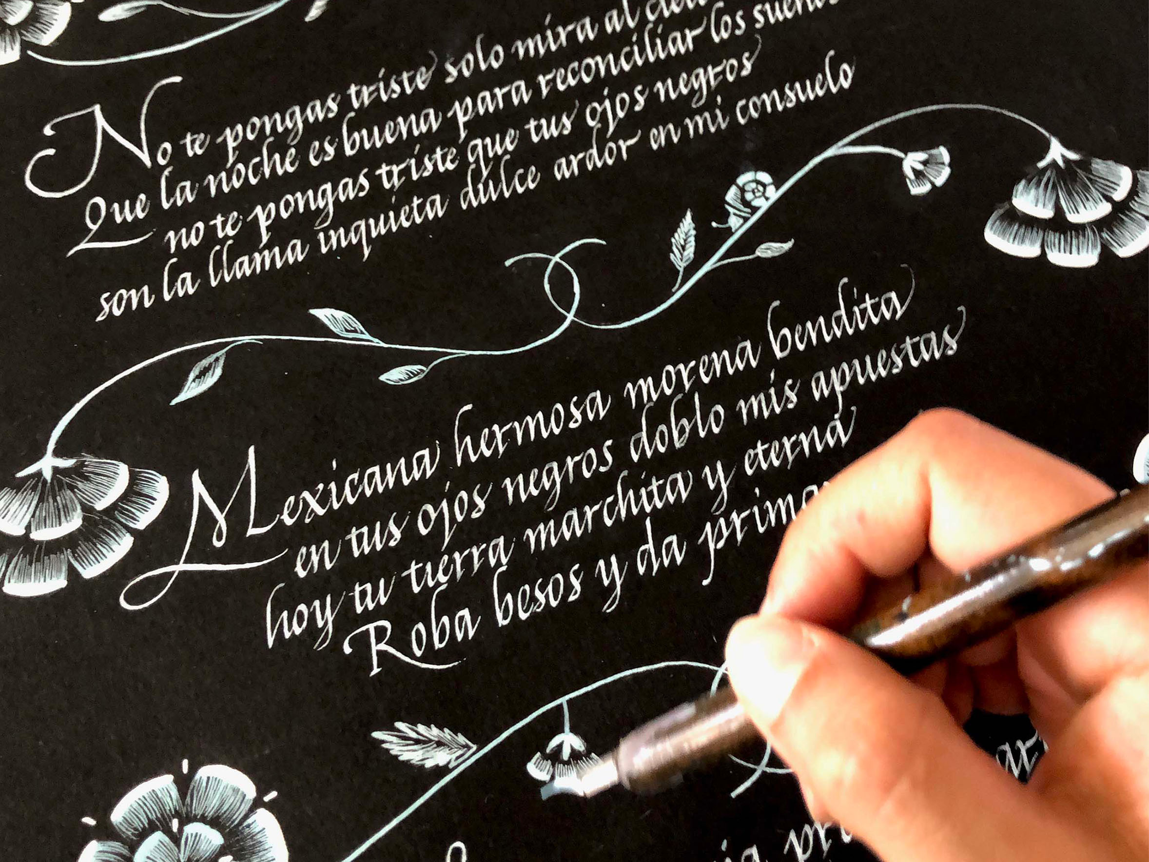 Calligraphy brings authenticity and a human touch to any project or event. I love creating custom pieces in my studio, working on calligraphy commissions for brands, or writing live at events personalizing items on the spot so everyone walks away with something made just for them. If you’re planning an event and want to add a thoughtful, personal touch, I’d be happy to be part of it.