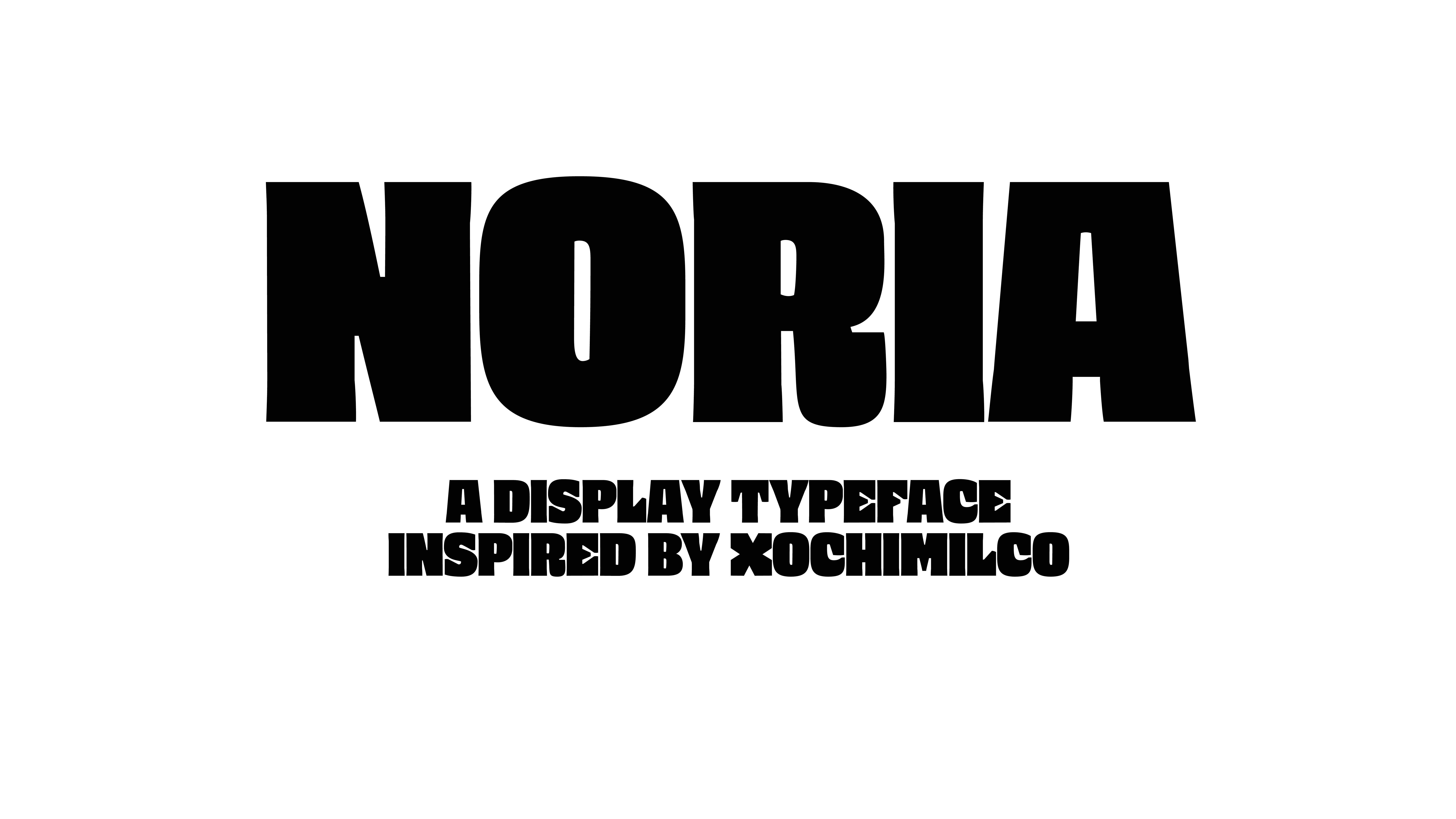 Noria is a display typeface inspired by the handcrafted letters found on the trajineras of Xochimilco, Mexico—a place where tradition and diversity come together.